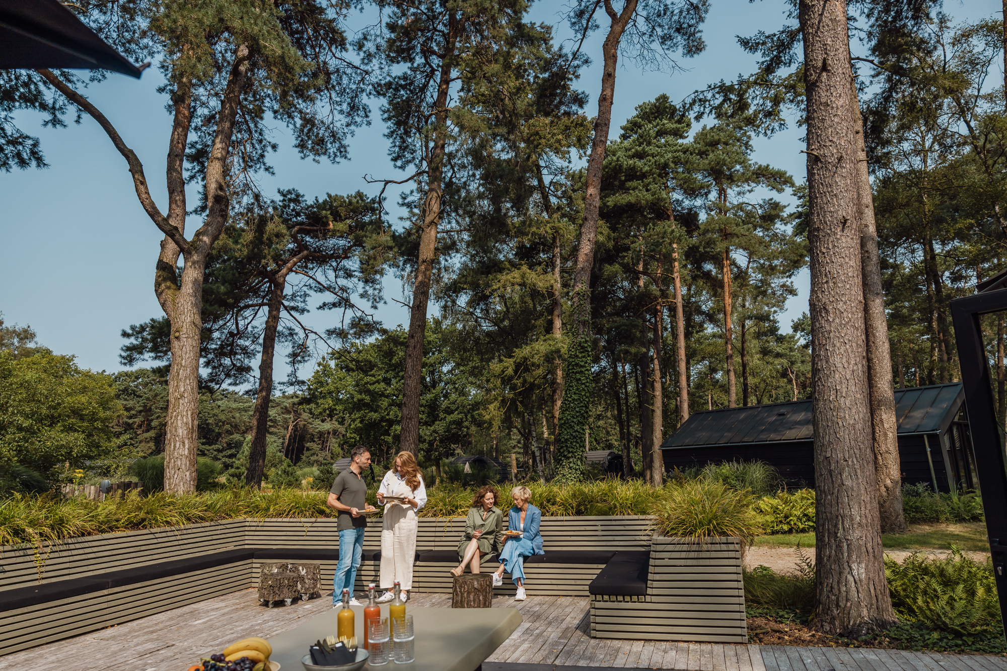Knorrende magen? Dat kennen we niet! Naast een volle fruitschaal en lekkernijen, kun je een keuze maken uit lunch-arrangementen eventueel aangevuld met een luxe 3-gangendiner met privé kok. Sluit je de dag liever af met een borrel en een borrelplank bij het kampvuur?